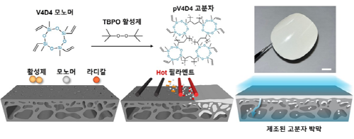 | ▲ iCVD 기법을 통해 기상 화학 증착 방식으로 만들어지는 고분자 박막 설명 그림 (사진=KAIST 제공) |