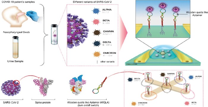 압타머(WQCSA, Wooden Quoit conformation structural Aptamer)를 반도체 칩에 접목, 전기화학적 반응을 통해 환자의 타액, 콧물, 땀, 뇨로부터 수초 내에 다양한 항원을 검출하는 비표지식 멀티 바이오센서를 개발한 세계 최초의 사례다.