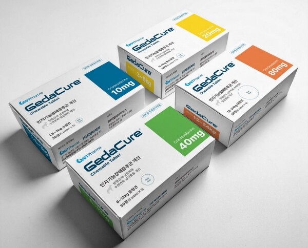 | ▲ 지엔티파마가 알츠하이머 치매, 루게릭병 등 퇴행성 뇌질환 치료 신약 후보물질인 ‘크리스데살라진’의 제조공법에 대한 유럽 특허를 취득했다. 반려견 치매신약 제다큐어 (사진= 지엔티파마 제공) |