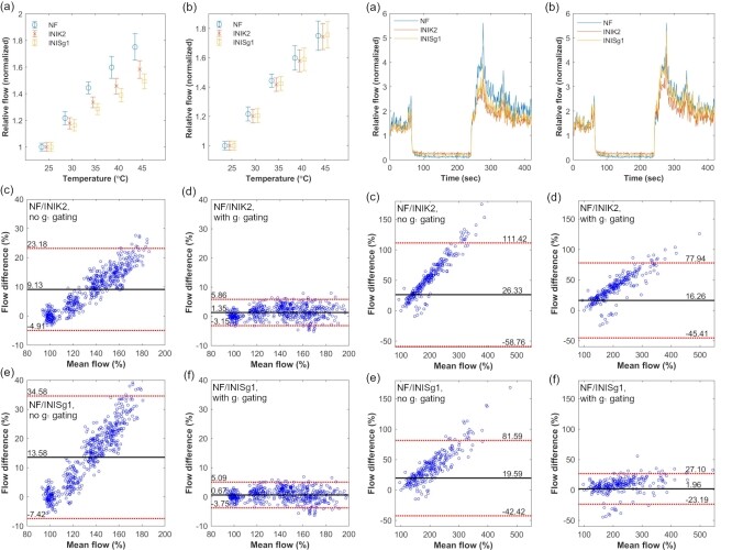 | ▲ 실제 생체 조직에서 측정된 혈류의 기존 알고리즘 분석 결과(밝은 파란색), 새로 제시된 알고리즘 결과(주황색, 노란색) 비교 그래프 (사진=지스트 제공) |