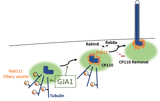 연구진은 또 GJA1 단백질이 원발성 섬모의 형성 과정에서 필수적이라고 알려진 Rab11 단백질의 이동을 조절하면서 섬모 형성에 관여하는 경로도 찾았다. 섬모의 미세소관이 자라나기 전 섬모 기저부로 Rab11 단백질이 모인 후, 일련의 과정을 통해 섬모 기저부의 뚜껑 역할을 하는 CP110 단백질이 제거돼야 섬모의 미세소관이 자라나게 된다는 것.
