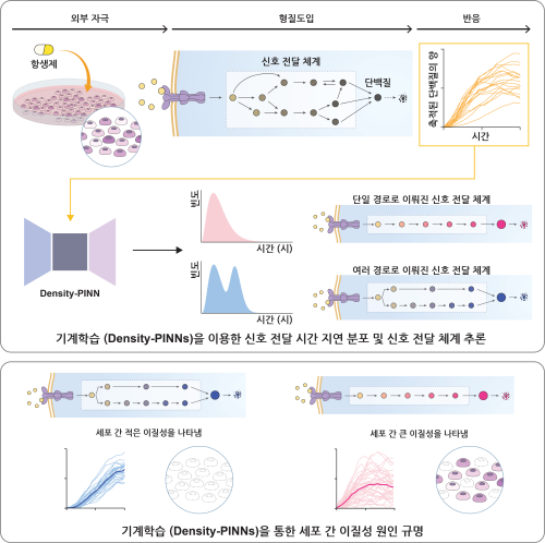 연구진은 기계 학습 방법론인 ‘Density-PINNs(Density Physics-Informed Neural Networks)’를 개발해 신호 전달 체계와 세포 간 이질성의 연결고리를 찾았다.