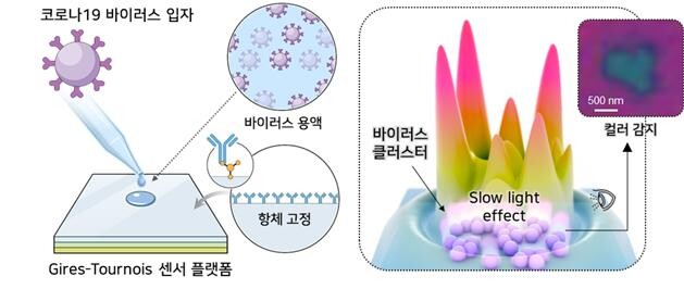| ▲ 코로나19 바이러스 입자의 컬러 감지가 가능한 Gires-Tournois 센서 플랫폼 (사진=지스트 제공) |
