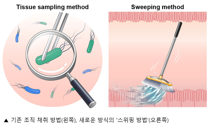 스위핑 방법은 내시경을 통해 위장 내 점액을 쓸어 담아서 채취하는 새로운 방법으로, 기존의 신속요소분해효소검사법의 일종으로 현재 사용하고 있는 진단 키트를 그대로 이용할 수 있다.