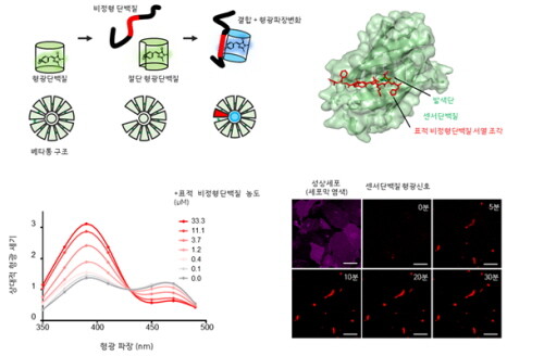 제1저자인 유태근 박사는 “고정된 구조가 없는 비정형 단백질은 일반적 단백질에 비해 센서 단백질의 디자인과 개발이 매우 어려운 표적이었다”며 “이번 연구가 비정형 단백질의 분석과 관련 병리기전의 연구에 새로운 방법과 전략을 제시할 수 있을 것”이라고 말했다.