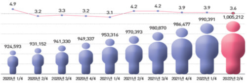 | ▲ 2022년 2/4분기 보건산업 종사자 수 (사진=한국보건산업진흥원 제공) |