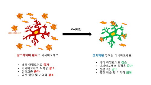 알츠하이머성 치매는 독성을 가지는 베타 아밀로이드와 같은 단백질 응집체가 뇌세포에 쌓이며 시작된다. 미세아교세포는 이러한 단백질 응집체를 먹어 치우며 뇌를 지켜주는 중요한 역할을 한다. 단, 미세아교세포가 감당할 수 없을 정도로 단백질 응집체가 많이 생기면 오히려 만성 염증반응이 일어나 신경세포가 손상된다. 환자의 인지 기능과 기억력이 점차 떨어지는 것은 물론이다.
