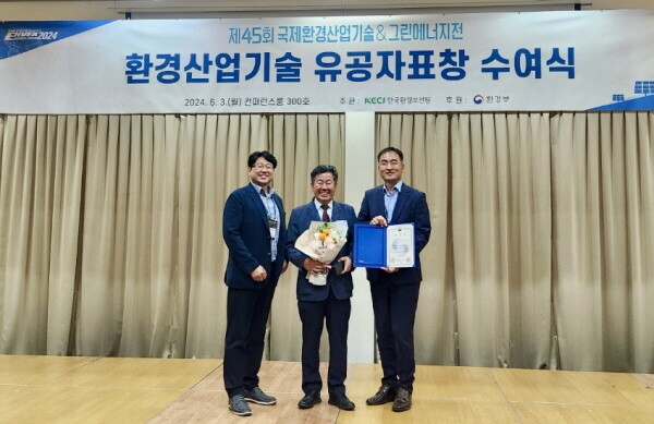 이번 수상은 그동안 수처리/폐수처리관련 기술개발의 공로를 인정받아 효림E&I의 신호준 사장이 환경부장관표창을 받았다.
