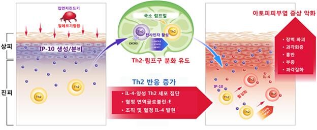 이번 연구의 핵심은 IP-10 인자가 병소 지역으로 침윤된 림프구를 활성화시켜 아토피피부염을 악화시키고 만성화시키는 중요 악성루프-유도 인자로서 작용한다는 사실을 규명했다는 데 있다.