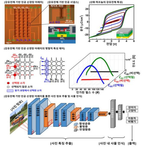 이에, 연구팀은 강유전체 물질에 기반한 시냅스 트랜지스터 소자들을 집적하여 고성능 인공 신경망 어레이를 제작했다.