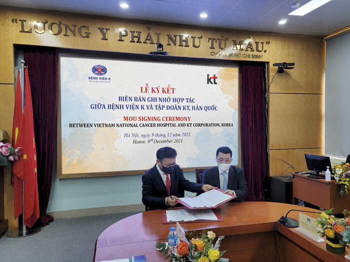 | ▲ KT가 베트남 국립암센터와 ‘의료 인공지능(AI)을 활용한 암 조기진단 솔루션 공동연구 업무협약(MOU)’을 맺었다 (사진=KT 제공) |