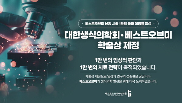 베스트오브미 여성의원 관계자는 “난임 시술 1만례는 단순한 숫자가 아니라, 1만 건의 임상적 판단과 치료 전략이 축적된 결과”라며 “이번 학술상 제정은 이러한 임상 경험을 학문적으로 환원하고, 연구와 진료가 함께 발전하는 구조를 만들겠다는 의지의 표현”이라고 말했다.