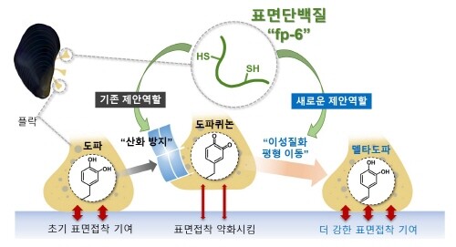 홍합접착단백질은 자연 유래 성분으로 인체에 무해해 의료용 접착제나 약물 전달체에 사용할 수 있는 새로운 의료 소재로 각광 받고 있다. 다만 홍합접착단백질의 주요 구성요소인 도파(Dopa)가 쉽게 산화되어 표면접착력이 약해진다는 한계가 있었다.
