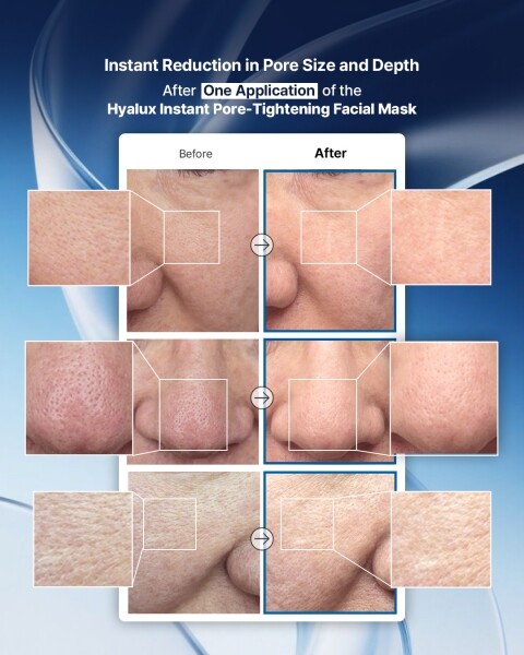 | ▲ 케어젠이 자사의 펩타이드 히알루로니다아제 기술 ‘CG-Hyalux’ (ECM 전달 플랫폼) 가 적용된 즉각적인 모공 및 주름 개선 효과를 검증하기 위한 기능성 마스크팩의 국내 임상시험을 시작한다. Hyalux Instant Pore-Tightening Facial Mask 이미지 (사진= 케어젠 제공) |