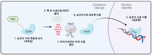 한편 KIST 신철희 박사와 KAIST 의과학대학원 박수찬 연구원이 공동 제1 저자로 참여한 이번 연구는 국제 학술지 `뉴클레익 엑시드 리서치(Nucleic Acids Research, IF 16.971)' 온라인판에 지난달 30일 자 출판됐다. (논문명 : Cytosolic microRNA-inducible nuclear translocation of Cas9 protein for disease-specific genome modification).
