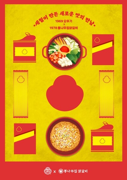 | ▲ 오뚜기가 춘천 대표 닭갈비 브랜드 ‘통나무집닭갈비’와 협업해 이색 메뉴 3종을 선보인다. 오뚜기x통나무집 닭갈비 협업 포스터 이미지 (사진= 오뚜기 제공) |