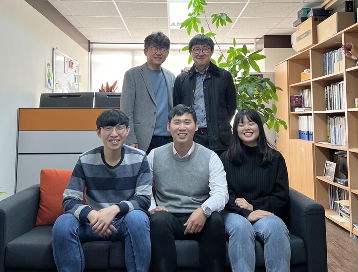| ▲ 뒷줄 왼쪽부터 김욱, 김은하 교수, 앞줄 왼쪽부터 노준기, 이왕희, 양예영 (사진=아주대 제공) |