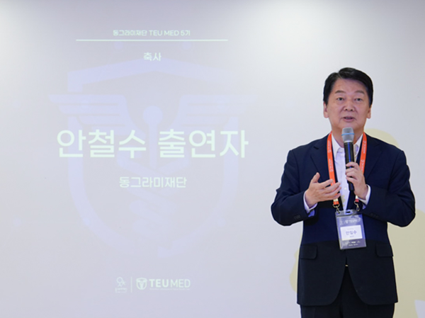 | ▲ 안철수 출연자가 동그라미재단 TEU MED 5기 오리엔테이션에서 참가자들에게 축사를 하고 있다. (사진=동그라미재단 제공) |