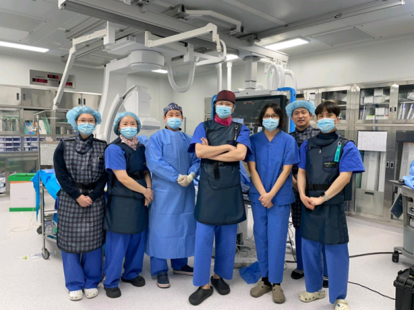 | ▲ 심혈관 중재술 전문 자격증을 보유한 팀원들과 박진섭 내과부장(좌 네번째) (사진=빌리브세웅병원 제공) |