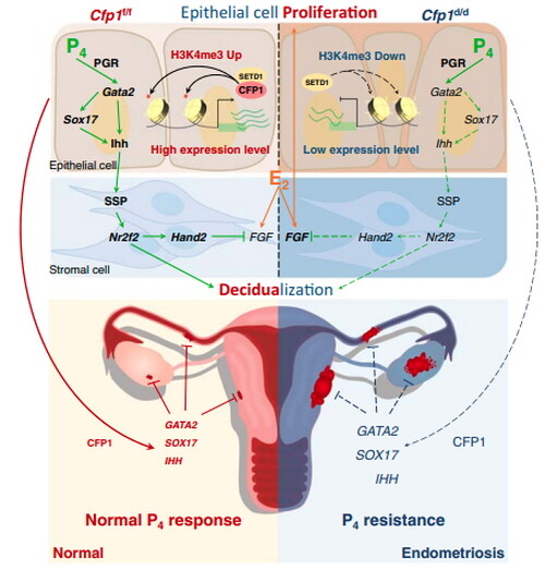 | ▲ CFP1 유무에 따른 자궁내막증을 유발하는 후성유전학적 조절 과정 반응 (사진=차 의과학대학교 제공) |