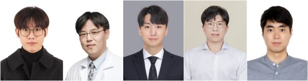 | ▲ (왼쪽부터) 안성호 학사과정생(공동 제1저자, 가톨릭대 인공지능학과), 임광일 교수(공동 제1저자, 가톨릭대 의정부성모병원), 원현식 석사(공동저자, 가톨릭대 인공지능학과), 김강민 교수 (공동 교신저자, 가톨릭대 인공지능학과), 정동화 교수 (공동 교신저자, 가톨릭대 인공지능학과)(사진=가톨릭대 제공) |