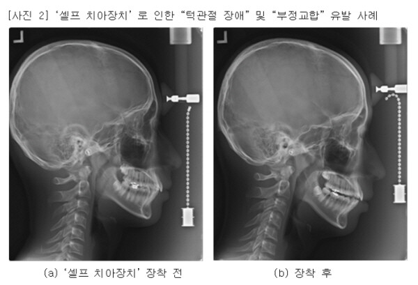 대한치과교정학회는 “비전문가에 의한 셀프 교정 장치는 치아의 파절, 치아의 괴사, 치관 파절, 치근 파절, 치아 발거, 잇몸 및 연조직의 외상과 궤양, 치조골의 상실, 보철물의 탈락 등 다양한 부작용이 발생할 수 있는 것으로 보고된 바 있다”고 밝혔다.