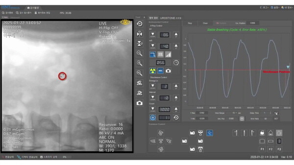 이번 장비는 국내 특허 등록 기술인 AI 호흡트리거 시스템, AI 오토포커싱(Auto-Focusing) 기능을 모두 갖춘 요로결석 치료 장비로 정밀성과 효율성을 크게 높였다는 평가다.
