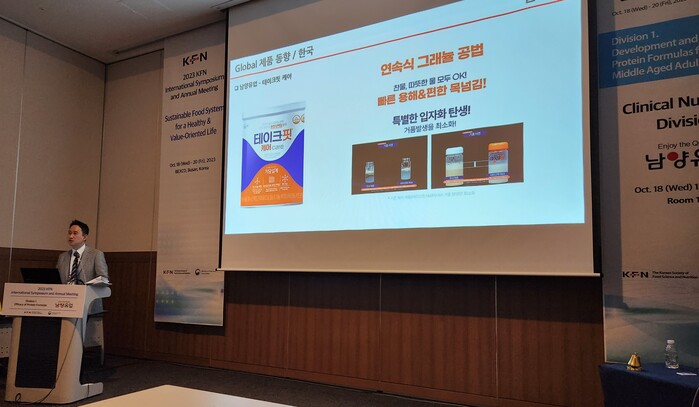 순천향대학교 가정의학과 유병욱 교수, 보람바이오 박미현 연구총괄부사장, 남양유업 헬스앤뉴트리션팀 김성한 팀장 등이 연사로 참여한 이번 학술대회에서 남양유업은 ‘중장년 성인 건강을 위한 단백질 조제식품의 개발’이라는 주제로 세션을 진행했다.