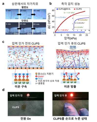 이에 연구팀은 실제 사람 피부의 자가치유 기능과 촉각세포의 기계적 자극에 따른 생체이온 신호전달 메커니즘에서 아이디어를 얻었다.