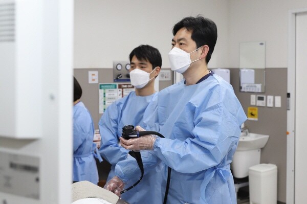 | ▲ 연세대학교 용인세브란스병원 소화기내과 임현철 교수가 소화기 내시경 시술을 진행하고 있다. (사진= 연세대학교 용인세브란스병원 제공) |