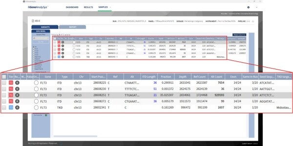 | ▲ 엔젠바이오가 가톨릭대학교 서울성모병원과 급성 골수성 백혈병(AML) 환자의 재발 위험을 정밀하게 추적하는 차세대 염기서열 분석(NGS) 기반 미세잔존질환(MRD) 진단 기술에 대한 국내 공동 특허 등록을 완료했다. 엔젠바이오의 정밀진단 소프트웨어 ‘엔젠어날리시스’를 활용한 MRD 아큐패널 AML FLT3 분석 결과 (사진= 엔젠바이오 제공) |