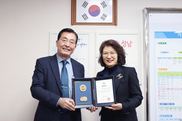 | ▲ 김영탁 분당차여성병원장(왼쪽)이 구성수 분당 보건소장과 함께 경기도지사 표창 기념촬영을 하고 있다.(사진=분당차여성병원 제공) |