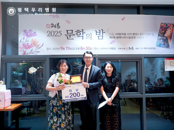 [mdtoday=박성하 기자] 평택우리병원은 지난 9월 19일 개최된 ‘2025년 문학의 밤 & 제1회 평택 디카시 공모전 시상식’을 공식 후원하며 지역 문화 예술 활성화에 뜻을 함께 했다고 밝혔다.