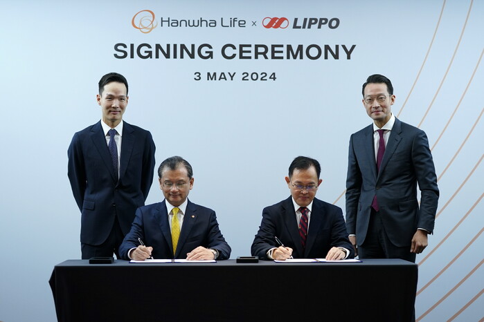 이날 계약식에는 한화생명 여승주 대표이사 부회장, 김동원 최고글로벌책임자(CGO) 사장과 리포그룹 존 리아디(John Riady) 대표, 아드리안 수헤르만(Adrian Sherman) MPC대표 등 양사관계자가 참석했다.