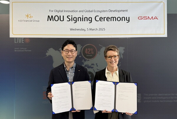 [mdtoday=최유진 기자] KB금융그룹은 5일(현지시각) 스페인 바르셀로나에서 세계 최대 이동통신 전시회인 MWC를 주관하는 GSMA(세계이동통신사업자연합회)와 ICT(정보통신기술)·금융 분야의 업무 협력 관계 구축을 위한 양해각서(MOU)를 체결했다고 7일 밝혔다.