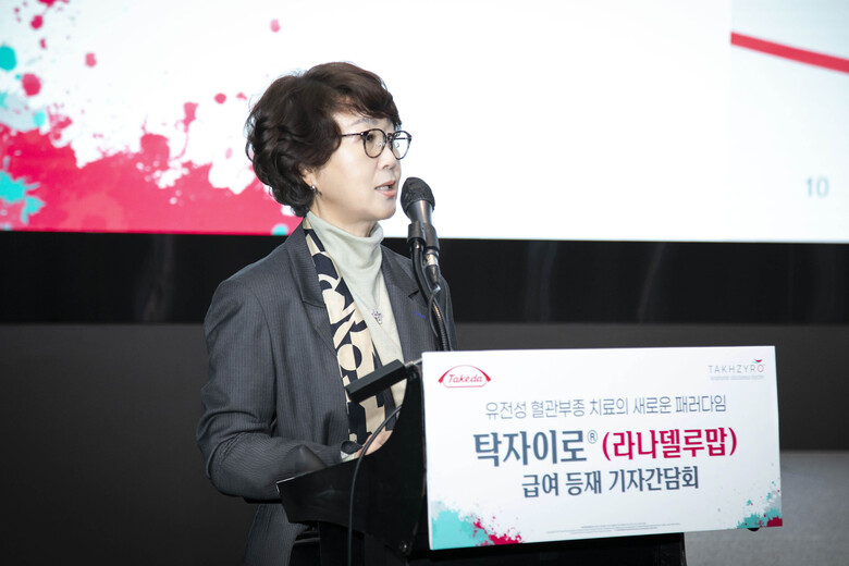 한국다케다제약은 유전성 혈관부종(HAE) 장기 예방 치료제 ‘탁자이로(성분명 라나델루맙)’의 국내 건강보험 급여 등재 및 출시를 기념해 기자간담회를 25일 개최했다. 회사는 이번 급여 등재를 계기로 국내 HAE 치료가 응급치료 중심에서 예방치료 중심으로 확대되는 전환점이 마련됐다고 설명했다.