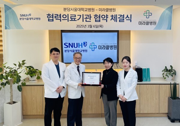 [mdtoday=이가은 기자] 미라클병원은 분당서울대학교병원과 병원 간 암 환자 진료 협약을 맺고, 지난 3월 6일 미라클병원에서 협약식을 진행했다고 19일 밝혔다.