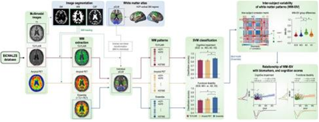 한국뇌연구원과 아주대병원 공동연구팀은 한국인체자원은행사업 ‘혁신형 만성뇌혈관질환 바이오뱅킹 컨소시엄’을 통해 확보한 인체 자료를 활용하여, 454명의 뇌 MRI와 아밀로이드 PET 데이터를 바탕으로 백질 패턴을 파악했다.