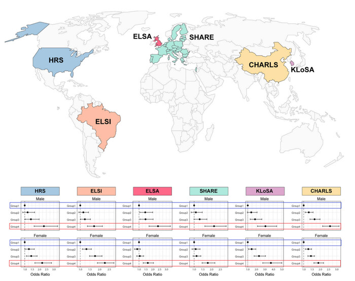 이에 연구팀은 한국(KLoSA), 중국(CHARLS), 미국(HRS), 영국(ELSA), 브라질(ELSI), 유럽 연합(SHARE)의 중장년층 데이터베이스를 활용하여 45세 이상, 5만1285명을 대상으로 악력과 우울증 간 연관성을 확인하는 연구를 진행했다.