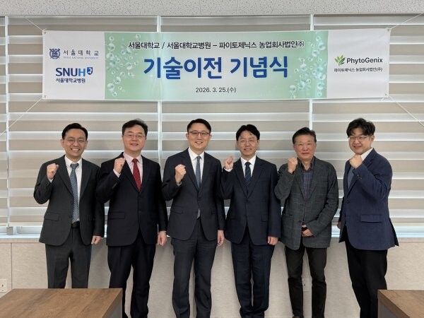파이토제닉스에 따르면 지난 25일 서울대 산학협력단 및 서울대병원과 해당 기술 양수 계약을 체결하고 기술이전 기념행사를 개최했다. 이번 행사에는 기술 개발을 주도한 서울대 약학대학 약학과 한병우 교수와 서울대병원 피부과 권오상 교수, 파이토제닉스 홍승호 대표를 비롯해 기술이전 및 특허 실무 관계자 등 주요 인사들이 참석했다.