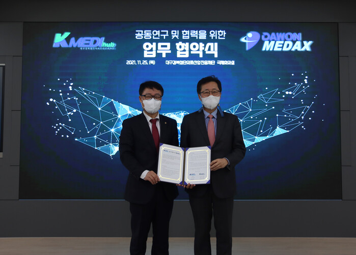 | ▲ 대구경북첨단의료산업진흥재단은 지난 25일 다원메닥스와 암세포만 사멸시키는 중성자 공동연구를 위한 업무협약을 체결했다 (사진= 대구경북첨단의료산업진흥재단 제공) |