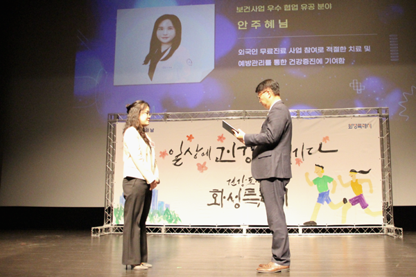 이날 안주혜 교수는 보건사업 우수 협업 유공 분야에서 공로를 인정받아 표창을 수상했다. 안 교수는 외국인 무료진료 사업에 참여해 적절한 치료를 제공하고, 예방관리를 통해 지역사회 건강증진에 기여한 점이 반영됐다.