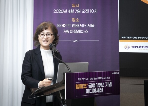 [mdtoday = 신현정 기자] 한국머크 헬스케어는 MET 엑손 14 결손(skipping) 변이 비소세포폐암 치료제 ‘텝메코(성분명 테포티닙)’의 건강보험 급여 적용 1주년을 맞아 미디어세션을 개최했다고 7일 밝혔다. 이번 행사는 국내 최초의 MET 변이 비소세포폐암 급여 옵션인 텝메코의 임상적 유용성을 재조명하고, 급여 이후 변화된 국내 희귀 폐암 치료 환경을 점검하기 위해 마련됐다.