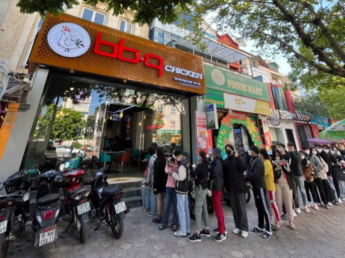 | ▲ BBQ가 베트남 하노이 부팜함(Vu Pham Ham)에 오픈한 'BBQ 부팜함점'에서 현지인들이 BBQ 치킨을 즐기기 위해 길게 줄 선 모습 (사진=BBQ 제공) |