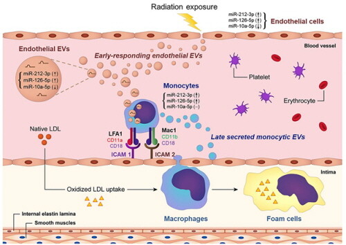 이번 연구 결과를 통해 연구팀은 방사선 선량에 비례하여 분비된 세포외소포체의 특정 성분(miR-126-5p)이 혈관내피세포와 면역세포 사이에서 정보를 전달하여 염증이 일어나는 초기 과정을 밝혀 방사선 노출에 의한 죽상동맥경화증 발생 위험을 알 수 있는 새로운 지표 개발 가능성을 제시했다.