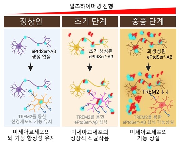 | ▲ 알츠하이머병 진행 중 TREM2 의존성 미세아교세포의 식균작용 (사진=서울대 의대 제공) |