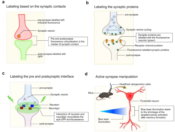 최근 형광단백질 기술의 발전으로 시냅스의 미세 구조를 탐구할 수 있는 첨단 기술들이 개발됐다. 그러나 해당 기술들은 작동 원리가 제각기 달라 각 연구 목적에 맞는 정보를 얻기 위한 최적의 기술 선택에 대한 어려움과 시냅스 관찰과 조절을 동시에 할 수 없다는 한계가 있다.