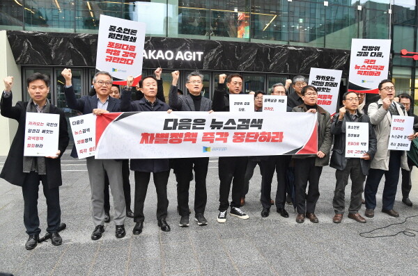이어 “불법적이고 불공정한 검색차별이 고착화될 경우 대다수 중소언론사들은 생존마저 위협받게 될 것이다. 이는 미디어생태계의 싹을 자르고 고사시키는 다음의 슈퍼갑질의 행태라 하지 않을 수 없다”면서 “미디어산업과 공생 발전해온 다음이 스스로 미디어시장을 황폐화시키고, 사다리를 걷어차는 무책임한 횡포”라고 규탄했다.