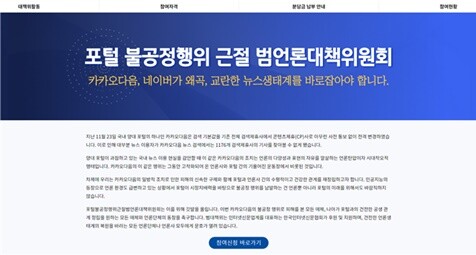 | ▲ ‘포털 불공정행위근절 범언론대책위원회’가 홈페이지를 개설하고 본격적인 활동에 들어간다고 26일 밝혔다. (사진=포털 불공정행위근절 범언론대책위원회 제공) |