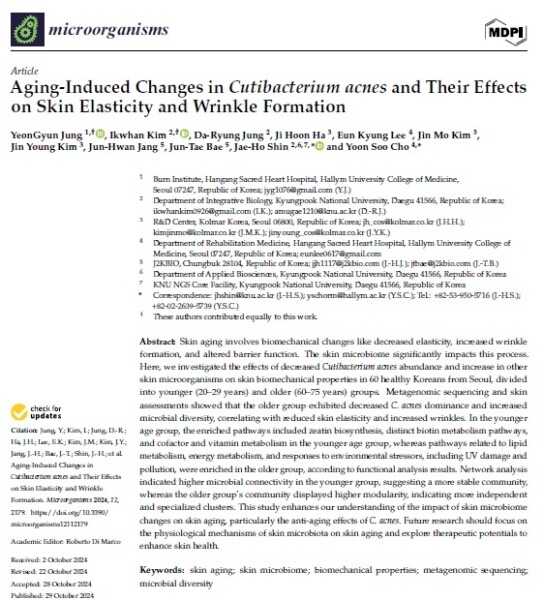 | ▲ SCI급 국제 저널 ‘마이크로오가니즘’에 게재된 논문 (사진=한국콜마 제공) |